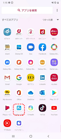 「アプリ一覧(4個の四角いマーク)」をタップし