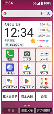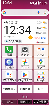 メイン画面で下から上にスワイプ(移動)し