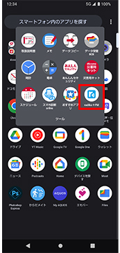 放送を聴きながら、アルバムの写真を見る場合などには、放送をバックグラウンドで流れるようにして別のアプリを起動します。ラジコの画面で[戻る]→[バックグラウンド]→ホーム画面でアプリを選択します。