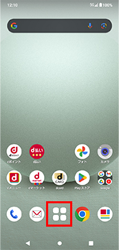 ホーム画面からアプリ一覧画面に移動、