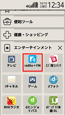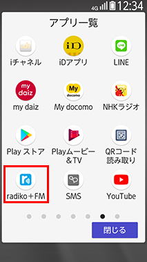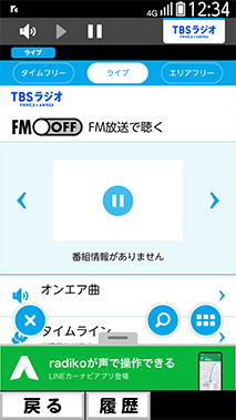 - 放送を聴きながら、アルバムの写真を見る場合などには、放送をバックグラウンドで流れるようにして別のアプリを起動します。ラジコの画面で[戻る]→[バックグラウンド]→ホーム画面でアプリを選択します。