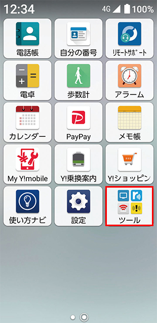 メイン画面で左にスワイプ(移動)し