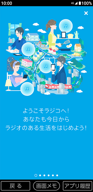 - 放送を聴きながら、アルバムの写真を見る場合などには、放送をバックグラウンドで流れるようにして別のアプリを起動します。ラジコの画面で[戻る]→[バックグラウンド]→ホーム画面でアプリを選択します。