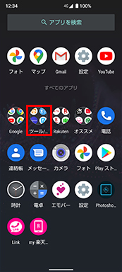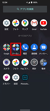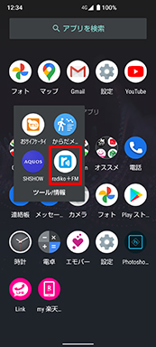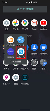 [ツール]フォルダをタップし[radiko+FM]をタップする