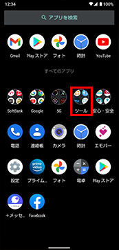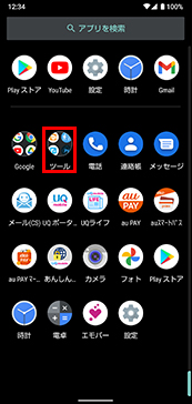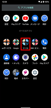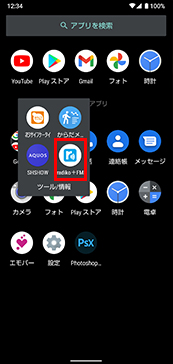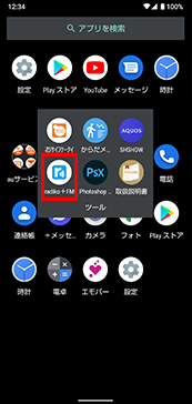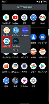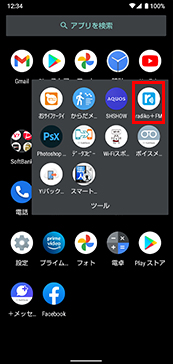 [ツール]フォルダをタップし[radiko+FM]をタップする