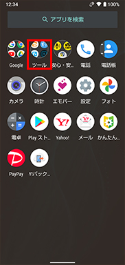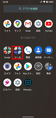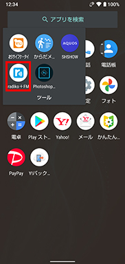 [ツール]フォルダをタップし[radiko+FM]をタップする